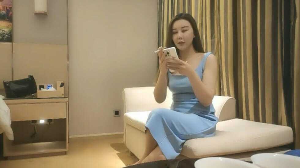 野马寻欢约蓝色长裙网红脸外围妹